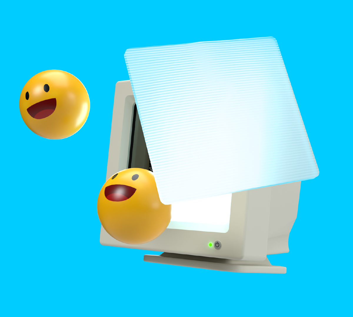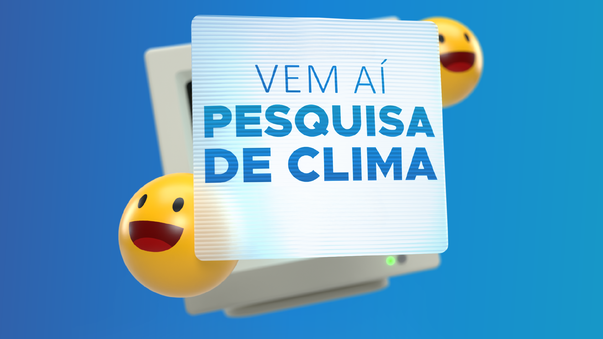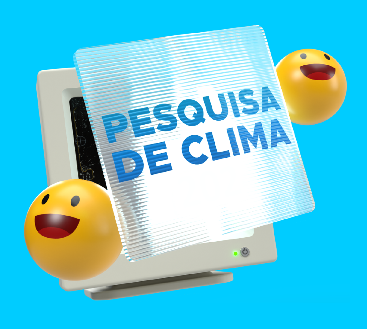 Arte de capa para a campanha da Pesquisa de Clima, renderizada em 3D, que reflete o meio pelo qual os funcionários irão interagir com a pesquisa.