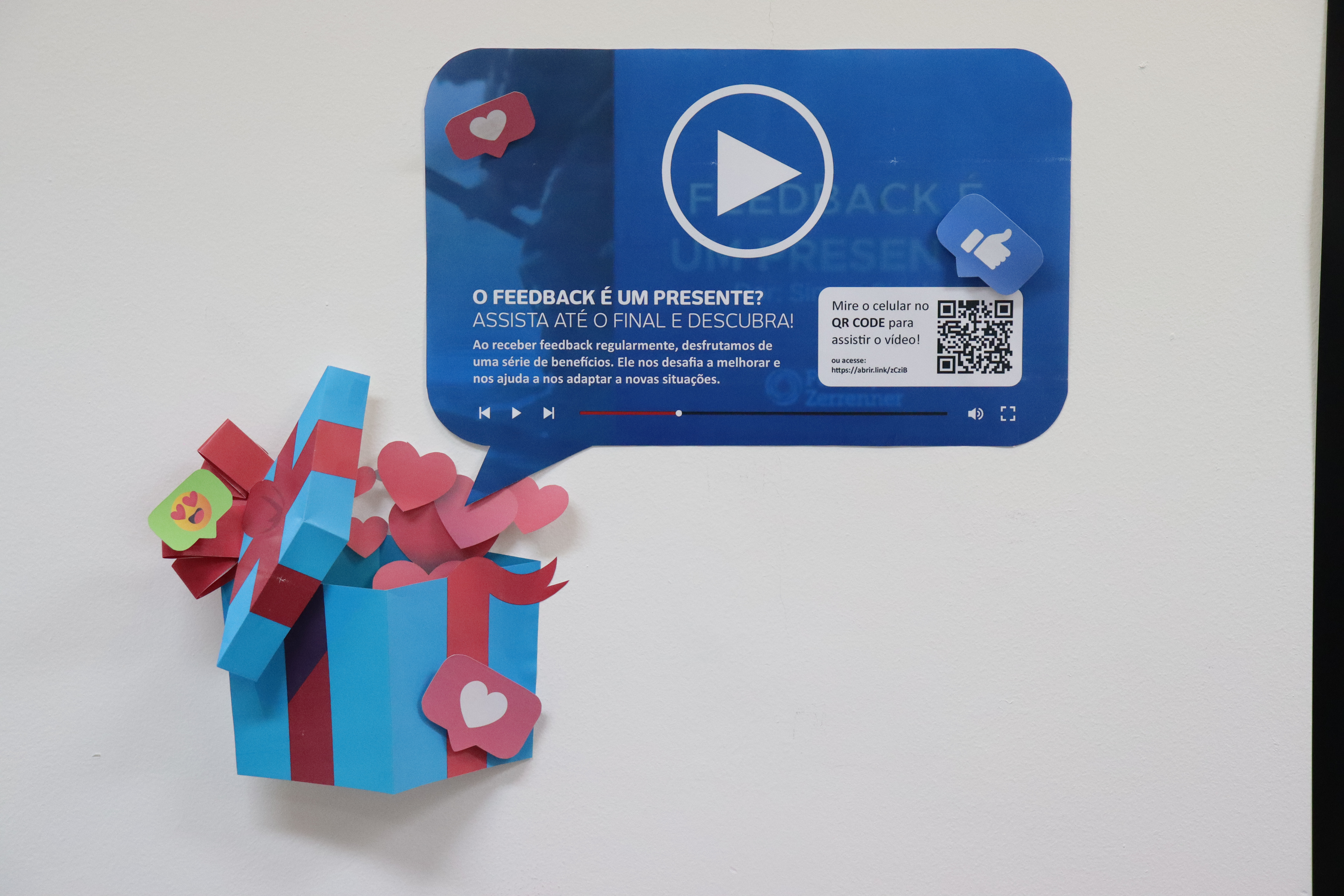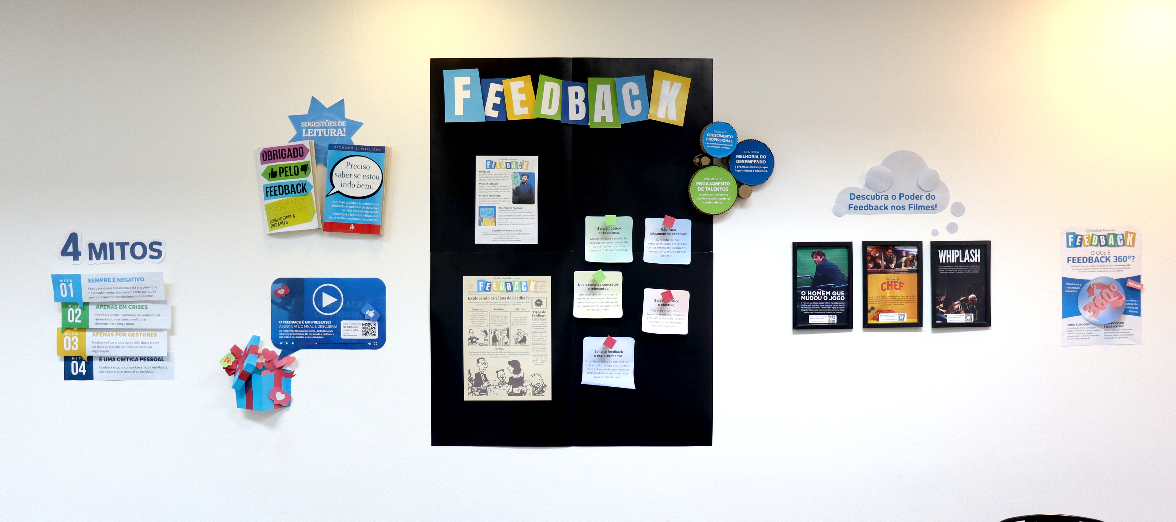 Este mural foi criado para reforçar as boas práticas do feedback saudável no ambiente de trabalho. O material foi instalado em área de convivência, com foco educativo e de incentivo à cultura do diálogo, usando linguagem direta, ilustrações leves e diagramação funcional. Pensado para ser consultado no dia a dia, sem perder impacto visual.